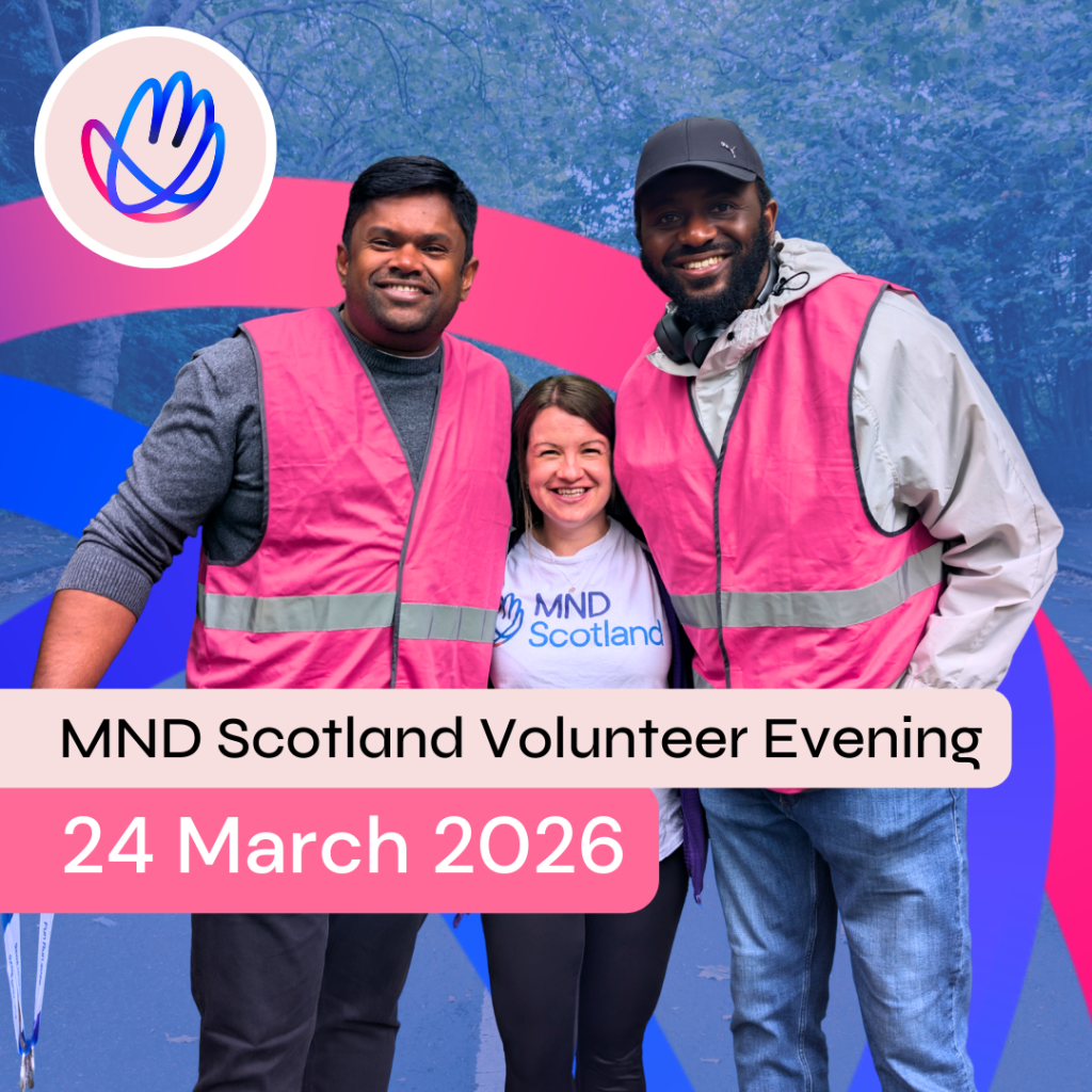 Volunteers play a vital role in helping us raise awareness and funds, driving our vision of a world without MND. From supporting at events, to helping in the community, every volunteer helps us do more for people affected by MND across Scotland.